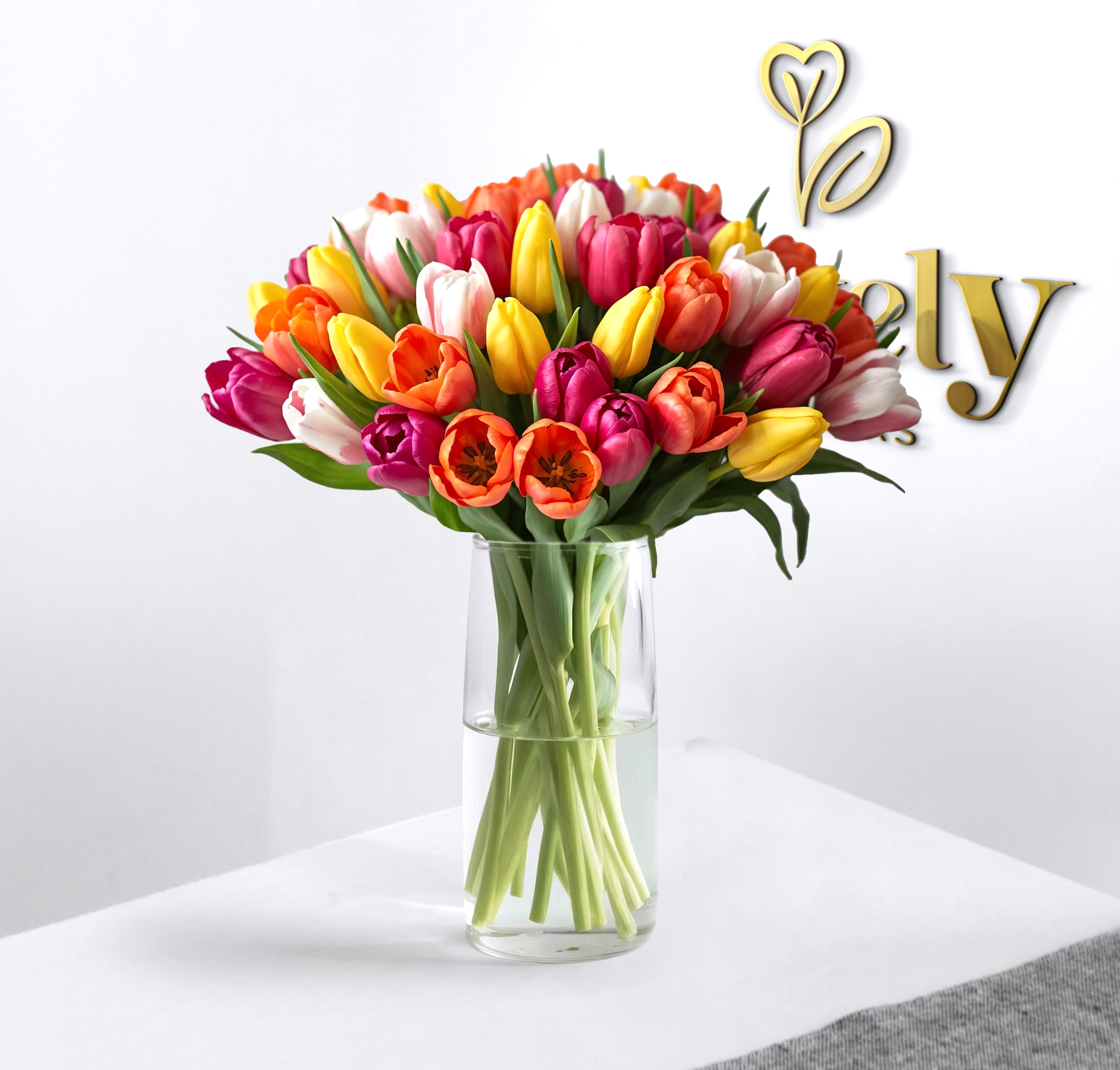 Bring instant joy with this vibrant mixed tulip arrangement featuring a playful blend of orange, pink, yellow, and white tulips in a clean glass vase. Full of energy and color, it’s the perfect choice for birthdays, congratulations, thank you, get well, housewarming, or “just because.” A fresh, modern gift that brightens any room the moment it arrives. mixed tulip bouquet, tulip arrangement in vase, rainbow tulips, spring flower bouquet, colorful tulips delivery, tulips in glass vase, same day flower delivery