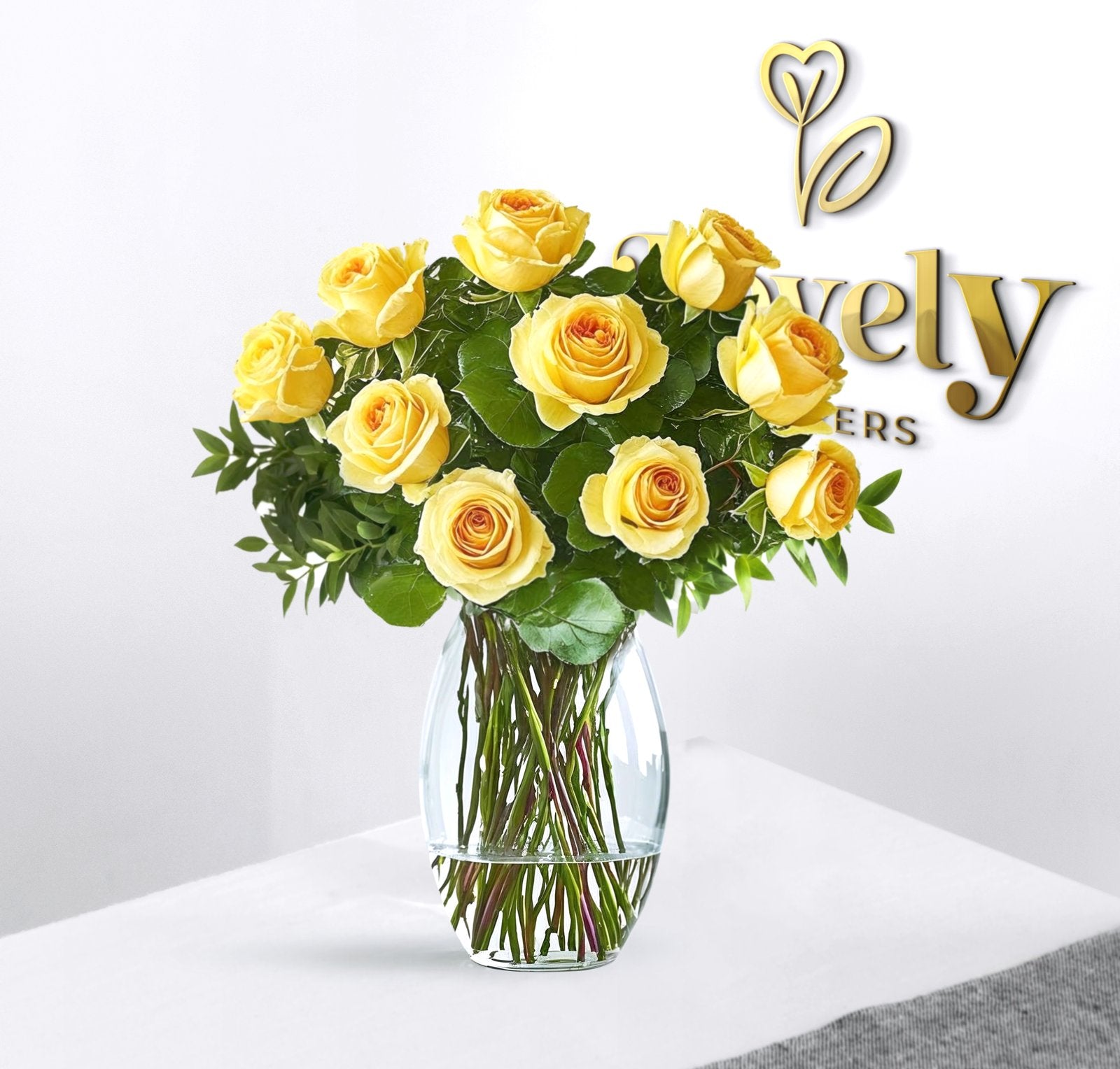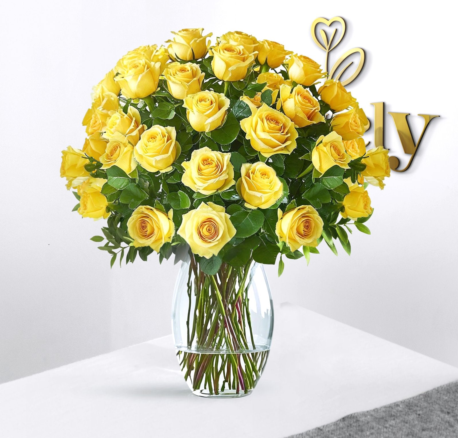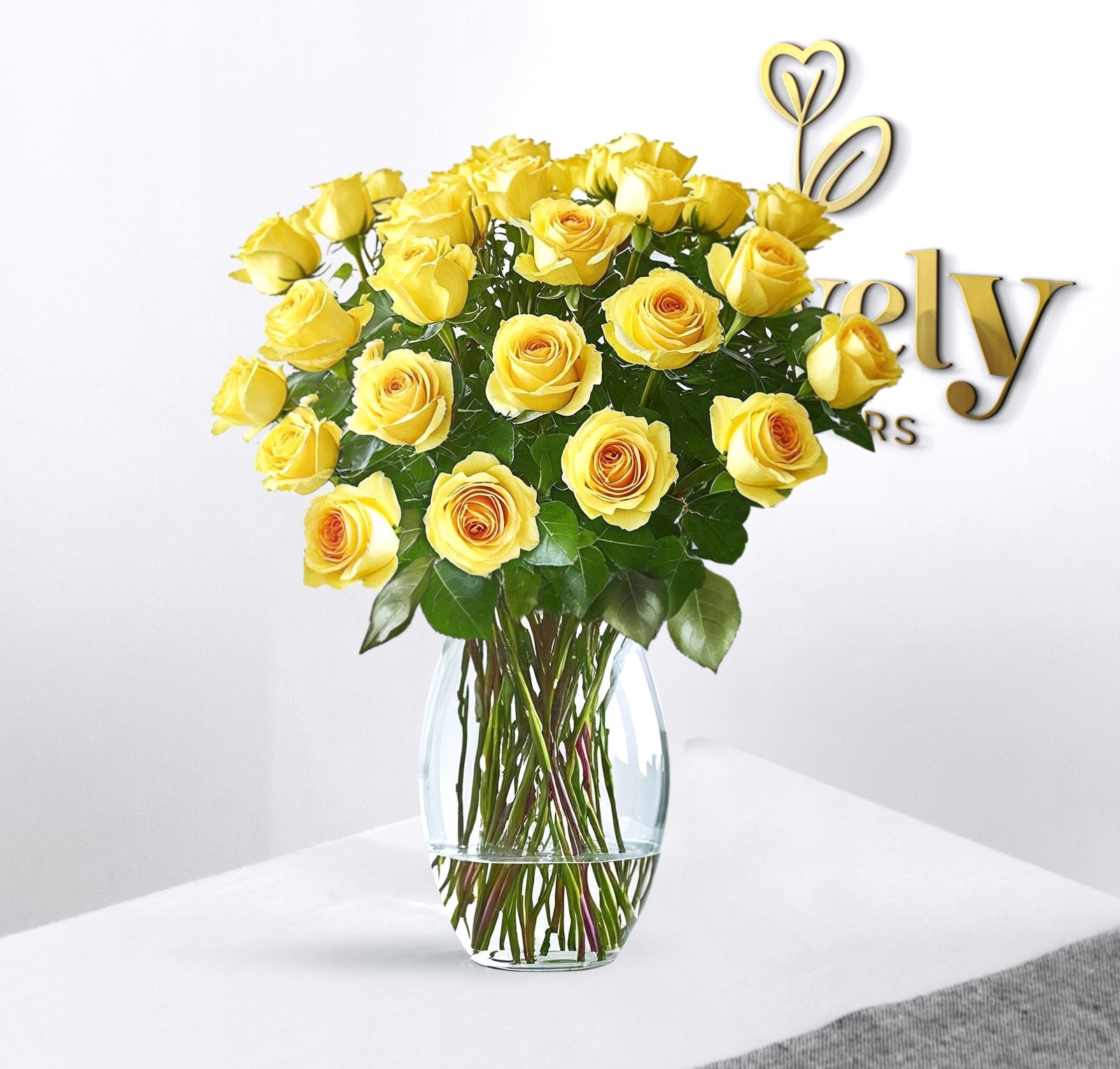 ☀️ Bright, bold, and full of life — The Royal Radiance brings sunshine to every space. Vibrant yellow roses in a sleek curved vase make a stylish statement of happiness and success.